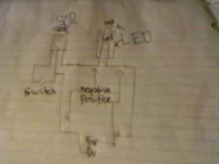 "Haciendo de la linterna" obtener el scr o el rectificador controlado de silicio y soldar la puerta para el interruptor y el extremo del interruptor al pin izquierdo de scr y luego soldar el pin correcto para el led y conectar un cable a la base.