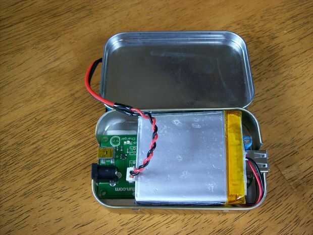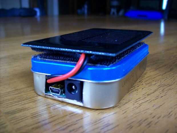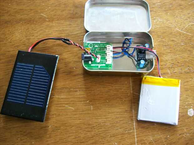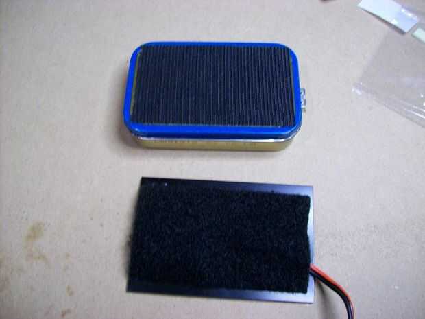 Ahora sujete la célula solar a la parte superior de la lata Altoids utilizando algunos 2" ancho Velcro. Envuelve el paquete de baterías con una capa de cinta de embalaje transparente para ayudar a protegerlo. Entonces el paquete de baterías es simple juego por encima de los dos circuitos es un próximo ajuste perfecto.
