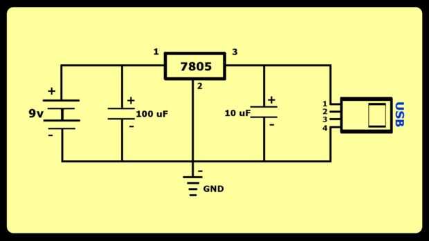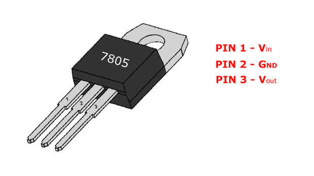 5. Consulte la configuración de pines del 7805. La soldadura de la IC sobre la base de tal que, de entrada es cerca del condensador y conectar la clavija de entrada de + terminal ve del condensador.