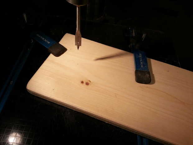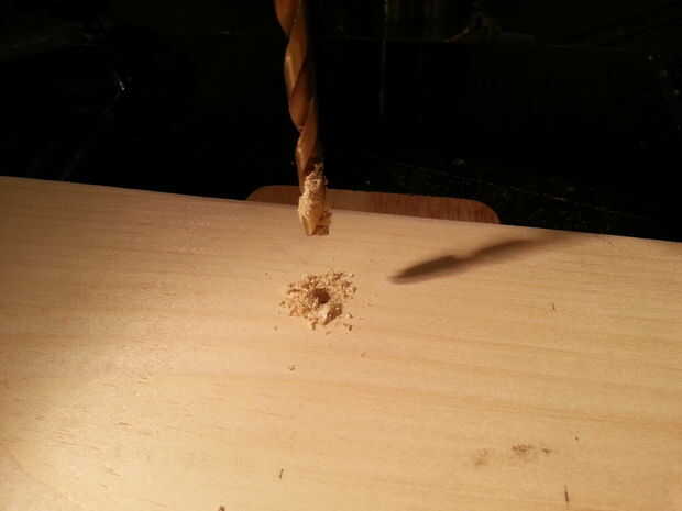 En un extremo, utilice un taladro para perforar un agujero de 1/2". Este es el agujero donde ponemos el pasador que sujeta el hilo.