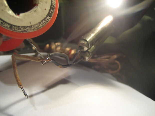 Paso cinco: Si tienes acceso a un soldador y soldadura fresca, "tin" los extremos del cable con soldadura para que puedan nunca recta. Esto es opcional, pero hace las cosas mucho mejor. Si no sabes soldar, encontrar a alguien que lo ha hecho antes. Uso de la soldadura con flux en lo que es no más grueso que el alambre sí mismo, a menos que realmente sepa lo que estás haciendo.