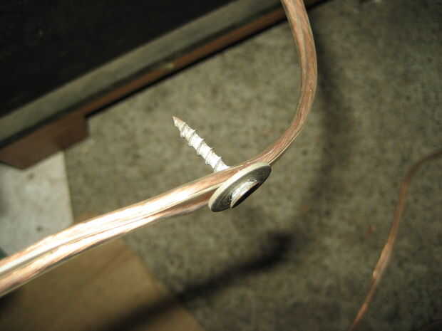 Cuadro segundo: ahora vamos a poner una madera tornillo con una arandela a través del orificio. Este paso es importante porque mantiene los cables de conseguir apretamientos, estiramientos de los altavoces. Si eso sucediera, los extremos de los cables probablemente toquen entre sí o la cesta de compras y destruir el amplificador. Asegúrese de que utilizar una arandela, lo que es un metal plano con una screwhole a través de él, por lo que no consigue cortar el cable por la cabeza del tornillo. Compruebe el borde de la arandela para sharp. Podría también puede usar un pedazo de madera.