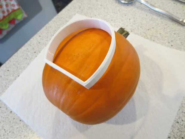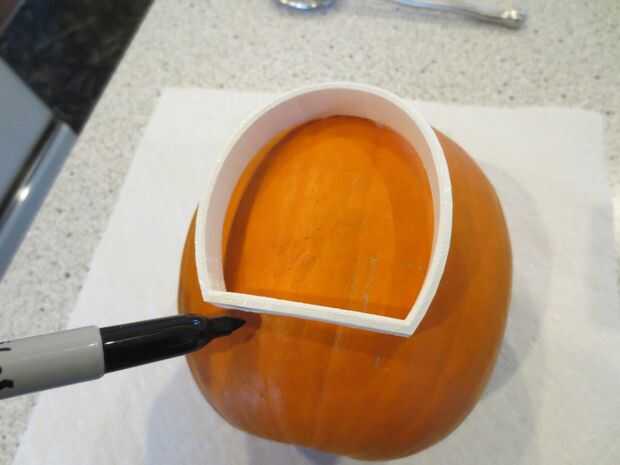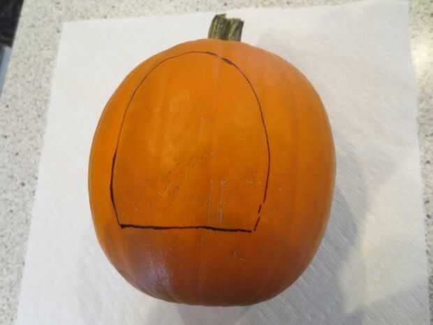 Coloque la puerta en el centro de la calabaza y asegúrese de que la parte inferior de la puerta de entrada es paralela a la base de la de la calabaza.