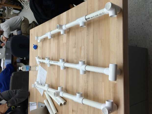 -Los materiales que necesitará para el medio 10 10 pulgadas perfiles de PVC, 12 pulgadas siete piezas PVC, 8 pulgadas diecisiete piezas PVC, 6 salidas de lado T, cruzadas 3 o más articulaciones, uniones en T 4 y 2 salida cruzada.