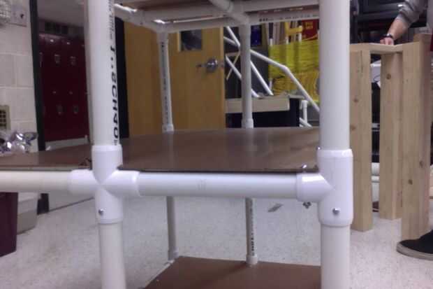 -En el lado perpendicular, necesitará conectar 2 tubos de 10 pulgadas a una toma de lado T. Poner esto entre las dos salidas de lado T que ya existen. Repita este proceso en el lado paralelo para completar el estante intermedio