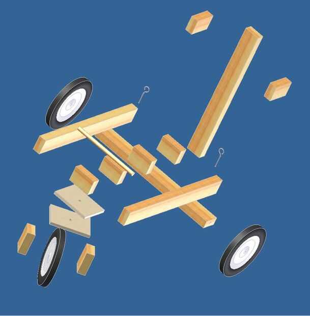 Para las ruedas traseras me acabo de comprar tornillos que encajan dentro de la abertura de la rueda. Taladré agujeros en los extremos de la viga transversal ligeramente más pequeño que el diámetro menor de la rosca (la caña interior de la parte roscada), para que el tirafondo tendría material para morder, pero eso iría recto perforado.