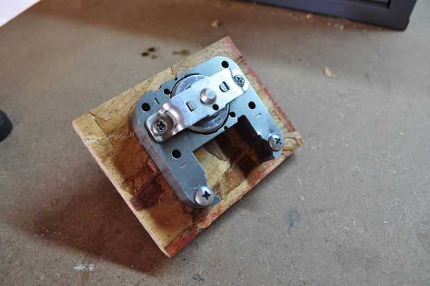 Ahora para hacer el pivot van a necesitar un determinado tipo de motor de ventilador o algo similar. Estos ventiladores pueden encontrarse en microondas, refrigeradores y prácticamente cualquier otros aparatos que requieren refrigeración. Una vez que ha encontrado su fan, lo primero que tienes que hacer es quitar las aspas del ventilador y retire la bobina (el material del alambre de cobre). Mi método para sacar la bobina es Desatornillar los soportes de los rodamientos y luego poner el marco en un tornillo y un martillo en la bobina. Debe deslizarse justo hacia fuera con un poco de persuasión. Después de necesita cortar los cables de cobre grandes usando un par de pinzas. Por último, antes de que vuelva a montar el motor (sin bobina) deberá trazar el marco en un trozo de madera (la 6 "x 6" uno) y luego cortar el círculo en el medio utilizando un serrucho y una sierra caladora para ranuras de corte en ambos lados del soporte. Una vez que el motor ha sido preparado y la madera corte luego le puede volver a montar el ensamble del rodamiento y utilice los agujeros para pernos en el marco para todo el conjunto a la Junta. A continuación simplemente cortar las aspas del ventilador del pedazo de centro del ventilador y póngala a un lado. Ahora estás listo para pasar al siguiente paso.