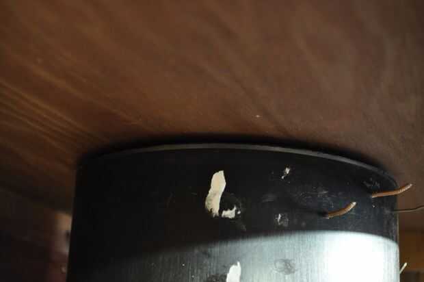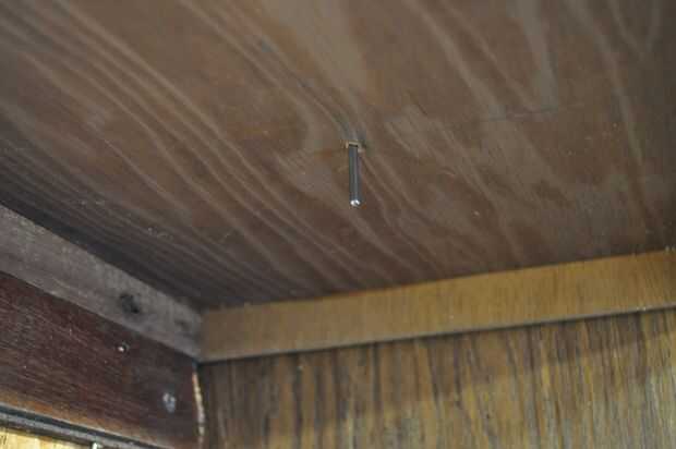En primer lugar usted necesita montar el sistema de pivote. Para ello, encontrar en el centro del cubo será y perfore un pequeño orificio en la parte inferior del gabinete. Este agujero tendrá que ser solo grande bastante así que el el eje sobre el eje no va a tocar los lados del agujero. A continuación, coloque el conjunto de pivote todo en el gabinete con el eje que se extiende a través del orificio. No es necesario atornillar o clavar el conjunto en su lugar, pero si desea evitar que se deslice alrededor de un punto de pegamento caliente debe hacer el truco.