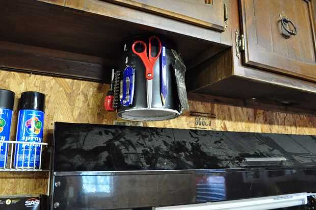 Ahora a montar todo. Mostrará cómo yo montar mi carrusel de herramientas en la parte inferior del gabinete por encima de mi mesa de trabajo. Con algunas pequeñas modificaciones se puede fácilmente montar en el techo, debajo de la mesa de trabajo, o a un refuerzo de la pared.