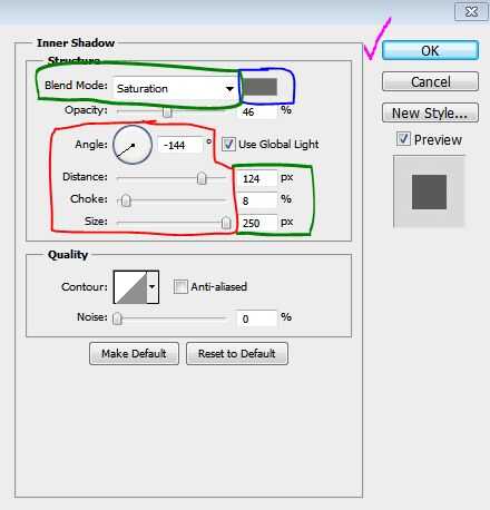 Para las 'sombras interno', usted puede jugar con el modo de mezcla, ángulo de la sombra, todo lo que jazz, pero te recomiendo un color gris más oscuro y una opacidad alrededor del 50%. Pulse el botón OK una vez que hayas encontrado algo que te gusta.