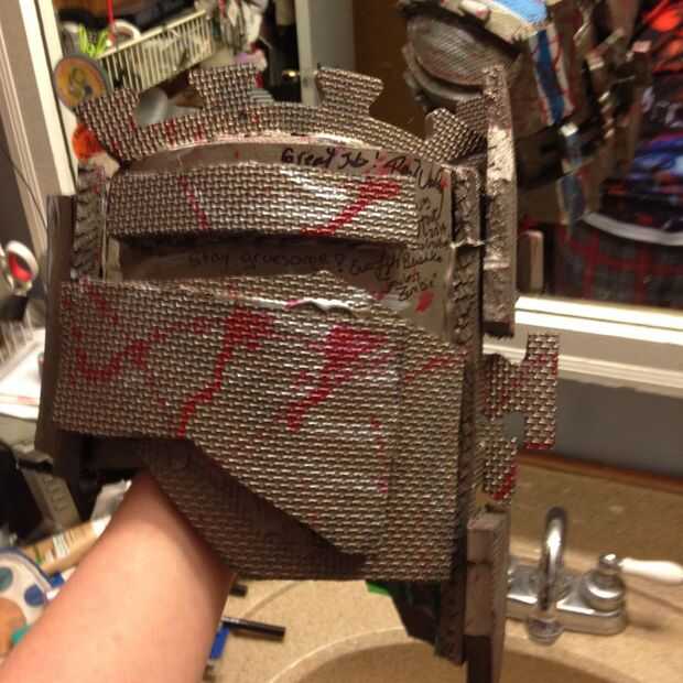 Para empezar, usted será recortar un círculo grande más grande que su cabeza. Tomar el círculo y poner encima de la taza de metal, calor la espuma con la pistola de calor y empuje hacia abajo de la espuma en el recipiente para crear una cúpula. A continuación tomar la cartulina y comienzan a bloquear los lados del casco cortando una hoja de rectángulo grande de cartulina como la cabeza (debe ir todo el camino alrededor de la cúpula), recórtalo, pegamento a los bordes de la cúpula y corte el fondo de su casco le gusto. A continuación lo cortamos un rectángulo de la cartulina en el casco para hacer la visera. Luego, cortar un rectángulo de la espuma que es ligeramente más grande para que quepa en el espacio. Cortar grandes hendiduras en el casco para obtener ese look clásico de Dead Space. Después de eso, elegir un separador de carpeta para hacer su visera (yo escogí verde). Corte el divisor para el rectángulo con las hendiduras en ella y en su lugar. A continuación, pegar el rectángulo en el casco y tienes tu casco básico. Detalle a su gusto, pintura, tiempo y usted tiene una pieza acabada. Para agregar luces, a pegar en los LEDs alrededor de la pantalla a la luz para arriba! Comentar y decirme si hecho uno. Me encantaría verlos. Y como siempre, alojarte astuto mis amigos!