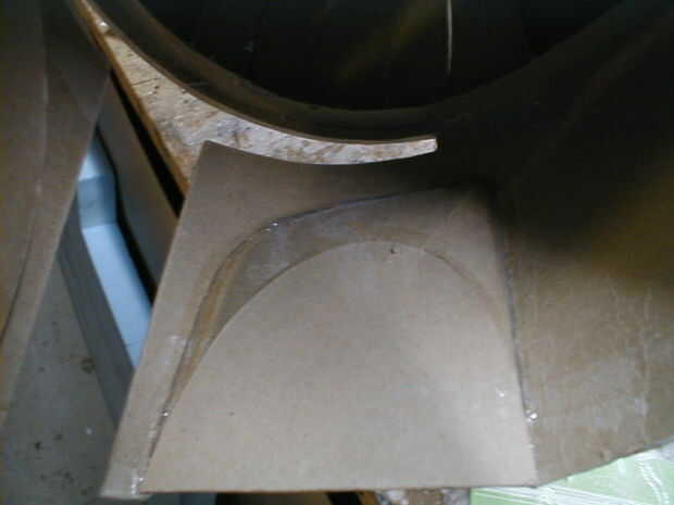 Ahora que la superficie interna del casco. Esto se hace cortando los patrones en las páginas 18, 14.17 y 13, encintado de juntas y cortarlos de una sola pieza de cartón. Esta sola pieza entonces se envuelve alrededor de la forma base del casco. Conseguir la cartulina ligeramente humedecida (use una botella de spray bruma) hará más fácil doblar. Luego epoxy de la articulación en la parte posterior del casco.