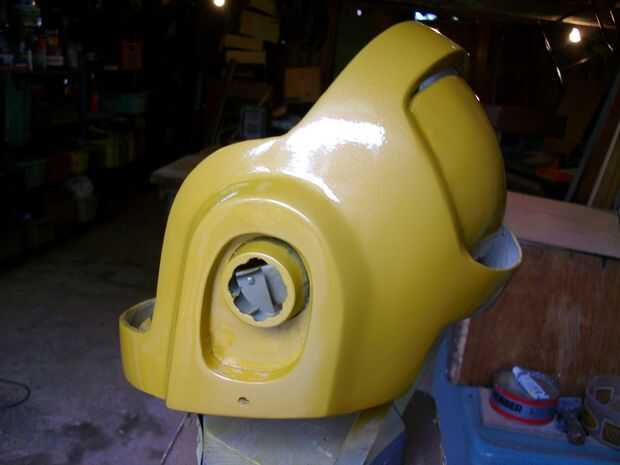 Tomar la pintura en aerosol y poner una capa de primer en este casco! La arena de cualquier imprefection y primer otra vez si es necesario! Entonces, el color final y una capa de laca transparente.