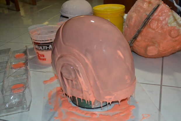 Por lo que usted quiere hacer una primera fina capa, luego una gruesa, luego otra gruesa y agregar claves del registro que son algunas cosas grandes que sobresalen de la silicona y finalmente una fina otra vez para sellarlo todo.