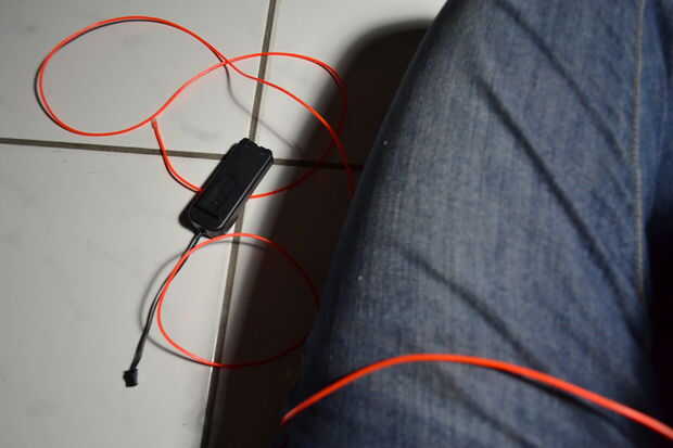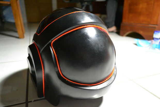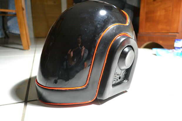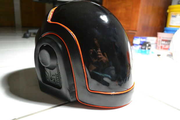 Correr EL cable a lo largo del casco, mientras pegado por supuesto, enchufe en el control y disfrutar de las luces!