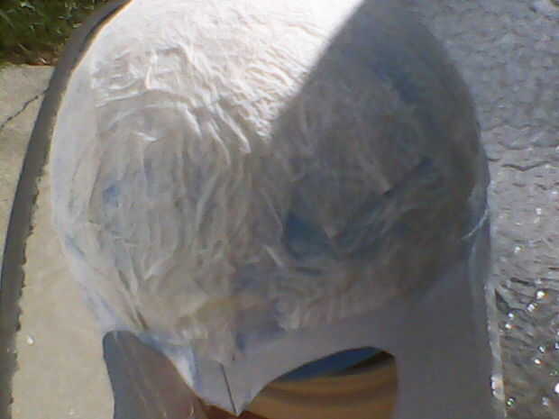 En primer lugar, poner un globo en la pieza principal de la cabeza y que no sea demasiado baja o alta. Dar una capa de papel maché. Algunas personas utilizan a diario pero este proyecto tiene un montón de curvas que usé porque es más flexible toalla de papel. Deje que se seque. A continuación, darle otra capa pero esta vez todo cubrir no sólo el globo. Cuando está completamente seco y duro podría pop el balón con una tachuela.