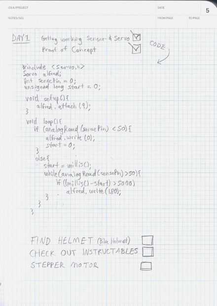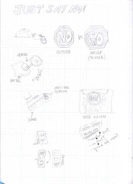 Este proyecto indica cómo hacer un casco que tiene una visera se deslice con la palabra "NO" impresa en el exterior. El casco utiliza un acelerómetro para determinar si el usuario está caminando o parado y despliega la pantalla cuando el usuario ha dejado durante demasiado tiempo.