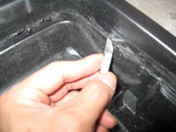 usé una punta de carburo con la dremel para anotar a los anclajes con asegurar la fachada de la moldura. luego usé un accesorio para cortar galletas junto con un cuchillo del exacto en las partes blandas para conseguir unos cortes limpios.
