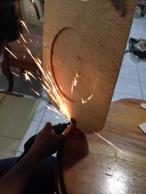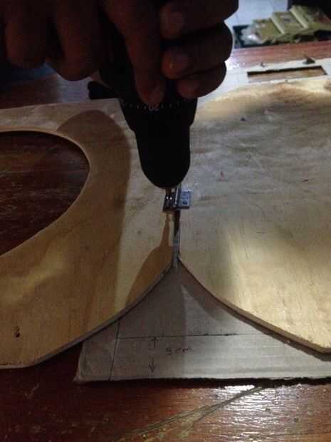 Now will the hinges. Tienes que poner para que sean simétricos para que pueda abrir y cerrar uniformemente. Es probable que el grueso de la madera, las puntas de lo tornillos sobresalgar. Cortar con el Dremel (Asegúrese de usar gafas de protección).