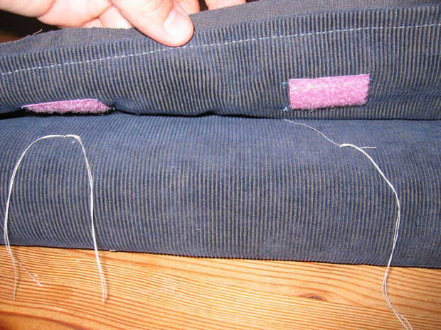 La siguiente cosa a hacer es rodarla para arriba como si ha terminado, entonces ya sea mediante hilvanes puntos o lápiz, marque donde coser el velcro correspondiente, como en el cuadro 2. Usted puede intentar rolloing por 3 o 4 veces hasta avereage un lugar, tal vez incluso poner todos los juegos, para asegurarse de que el velcro va a estar en el lugar correcto cuando se hace.