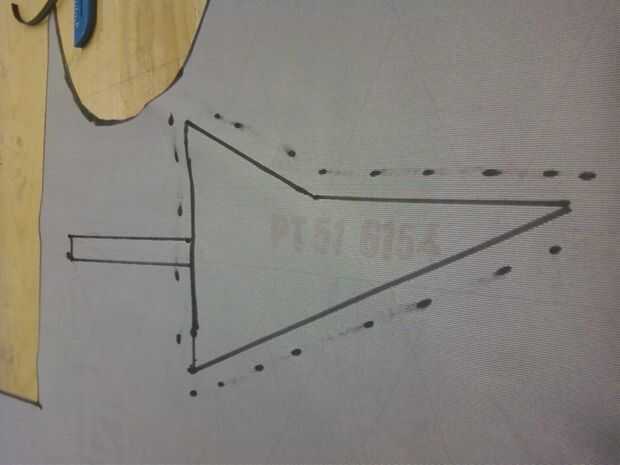 1. con una regla, hacer un esbozo de sus tijeras. Puede ser un triángulo simple o como el mío, tiene contorno.