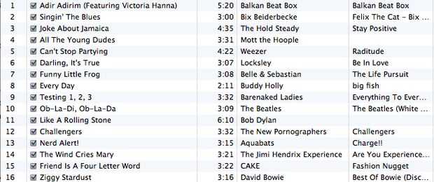 Ir a través de iTunes (o sin embargo almacenan tu música) Biblioteca y elegir las canciones que te gusta. Seleccionar algunas canciones que no te gusta tanto, demasiado. Puede que no sean los mejores, pero si van juntos, sonará bien. No pensar en la persona, solo tiro algunas canciones juntos que podrían ir juntos.