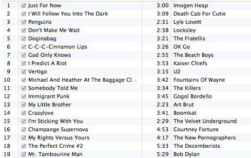 Es bueno tener una lista de todas las canciones por lo que una persona puede saltar a una canción que gustan o encuentran la música en algún otro lugar. Aquí tienes algunas opciones. Usted puede imprimir directamente desde iTunes, que le dice el artista, nombre de la canción y longitud de la canción. El único problema aquí es que puede cortar el nombre del artista si el título de la canción es largo, y deja una etiqueta de "Hecho con iTunes" en la parte inferior. Si tienes tiempo y paciencia, se escribe en Microsoft Word o Photoshop. Si escribes a tener en cuenta que CD se trata de poco menos de cinco pulgadas por cinco pulgadas.