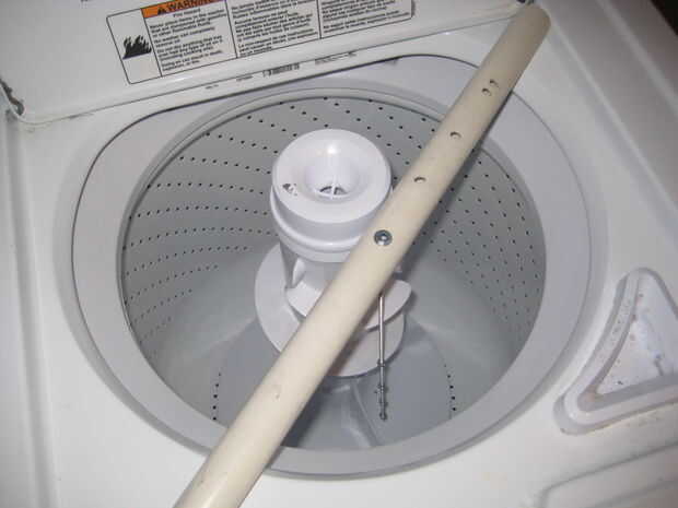 Cuando se lanza agua desde el tanque en la máquina, ¿cómo sabes cuando tienes suficiente? Esta herramienta establece en la parte superior de la cuenca y tiene una vara de medir que cuelga. Hay cuatro tuercas de fijación de la palanca que muestran el nivel de agua para cada uno de los tamaños de cuatro carga. Determiné las ubicaciones de estas tuercas, observando el nivel máximo de agua para cada tipo de carga. Como estoy llenando la lavadora de la manguera del tanque, me aseguro de empapar toda la ropa, por lo que la ropa se hunde hacia abajo a su nivel natural, húmedo. A continuación, elegir un tamaño de carga que cubre la ropa con un par de pulgadas de agua.
