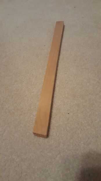 Necesita una pieza de madera larga y recta, si con la intención de uso duro, use un pedazo de grano duro y recto. Utilizando un pasador se siente mejor cuando barrer pero me parece un poco apenas perforar. Para este instructable usé un trozo rectangular de madera de pino de 14 pulgadas de largo. Usted quiere suficiente espacio para las cerdas y su mano para que aficionados de 14-20 pulgadas funciona bien para un medio de tamaño de pincel.
