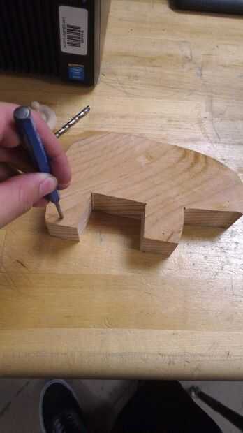 Perforar algunos agujeros con algo en el juguete sin terminar. Usé un cincel.