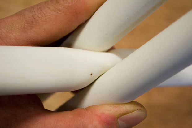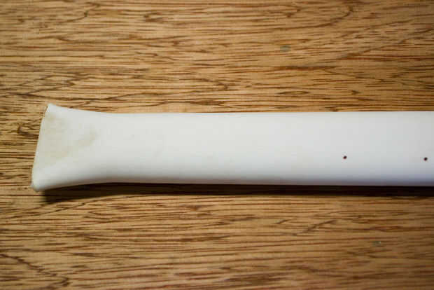 Calentar aproximadamente una pulgada del extremo del mango. Una vez que es flexible, presione debajo de una tabla en un ángulo para pellizcar el extremo cerrado. Una vez presentada, esto hará que un final agradable y suave que se siente muy bien contra la palma.