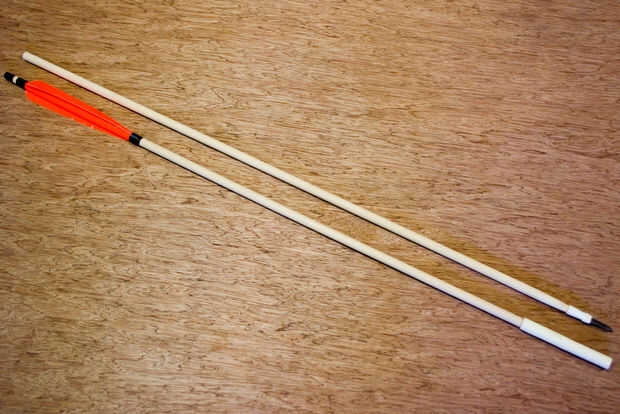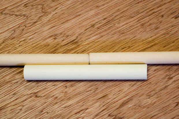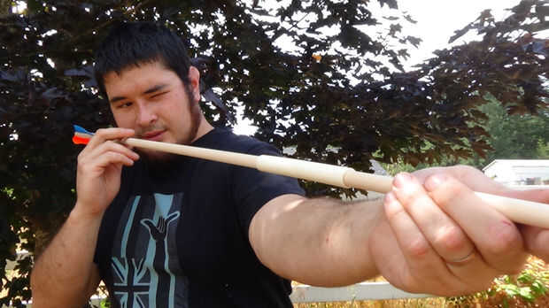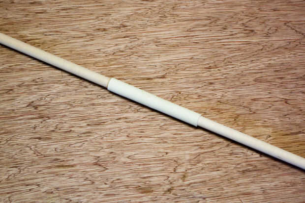 Ahora vamos a hacer el punto y dart el conector. Este uso de tubería de plástico para dardos de atlatl es el brainchild de Justin Garnett de basketmakeratlatl.com que hace un montón de atlatls réplica y también realiza experimentos con los materiales modernos.