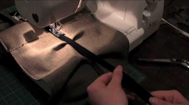 7. comience a coser el elástico a la ropa, asegurándose de que estire el elástico, como coser, para que las colmenas se crujir más. Empiece en el centro y hacia un extremo. Repita en el otro lado.
