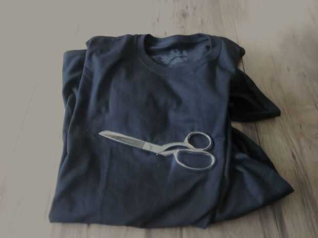 Camiseta (más grande que usted normalmente usa y color de su elección, +-$5) tijeras de tela