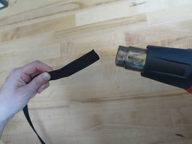 Cortar las cintas. Utilice una pistola de calor para sellar los extremos de las correas para que no debilite. Pase el extremo de una correa por un triglide. Pasar un listón de agujero en la parte trasera y luego a través de la tri-glide. Repita para el otro lado de la correa, así como la otra correa. Ajustar a tamaño.