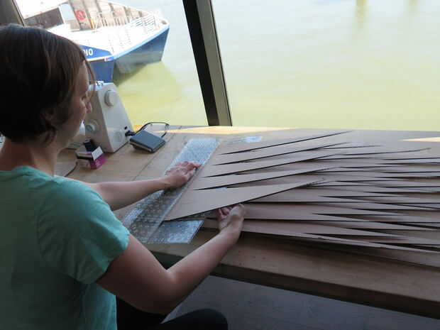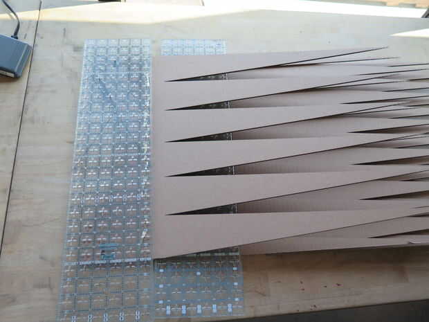 Con picos apuntando a su derecha, coloque una regla en la punta, con su borde derecho donde quieres que el doblez que. Otra regla debajo del conjunto de picos del resbalón y se usa para doblar a la izquierda. Repita para los restantes conjuntos de picos.