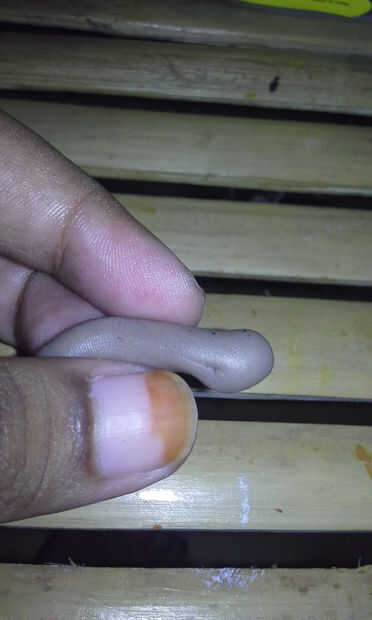 hacer dos bolas de arcilla fimoPaso 1: hacer dos bolitas hacer dos bolitasPaso 2: con cuidado haga las bolas planas hacer suavemente las bolas planasPaso 3: cortar una esquina cortando una esquinaPaso 4: hacer un ojo hacer un ojoPaso 5: hacer un aguj