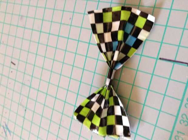 Tomar la pequeña tira de cinta y envuélvalo alrededor de la mitad del arco