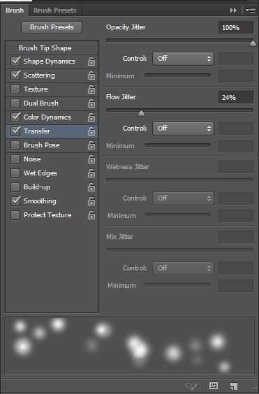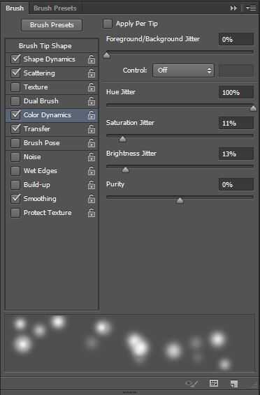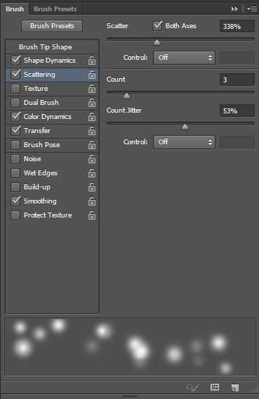 Vas a crear otro cepillo, pero esta vez las estrellas, así que vuelva a abrir su ventana de cepillo y vuelva a seleccionar el soft redonda. establece su forma de punta de pincel en la configuración que tengo en foto 1 seguir juego con el resto de las imágenes, pero esta vez incluye la opción de la dinámica de color (fotos 2-5)