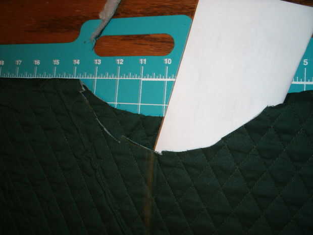 Material de Jersey que se hacen camisetas de stretch, material acolchado generalmente no. Así que añadimos un relieve corte que da el collar de la "cerradura" de la forma se llama para. Algunos collares eran nada más y luego un corte laminado o un cuadrado en forma y podría o no podría haber tenido cortes de alivio, me gusta el aspecto de "Ojo de cerradura" cuando cortadas por lo que hago aquí. Hice añadir otros collares si la demanda está ahí.