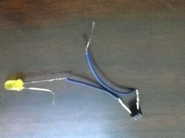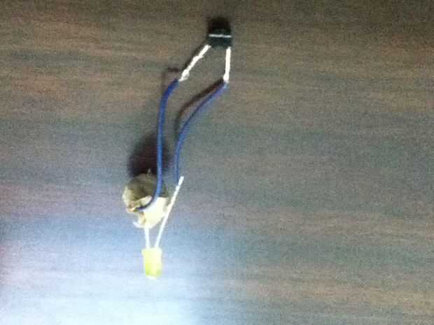 ahora conectar ese cable a un extremo del interruptor como se muestra en la imagen, coloque otro pedazo de alambre de 7,5 cm en el otro extremo del interruptor y conecte la batería de-extremo a la + final