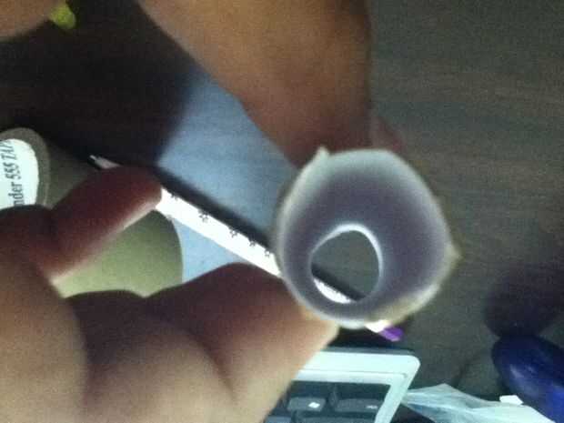 ahora corte un pedazo de papel blanco mide 21,5 cm de longitud y 8,1 cm de ancho luego rodarla con 1 cm en el medio. Luego que sea firme por pegar cinta en ambos extremos de los
