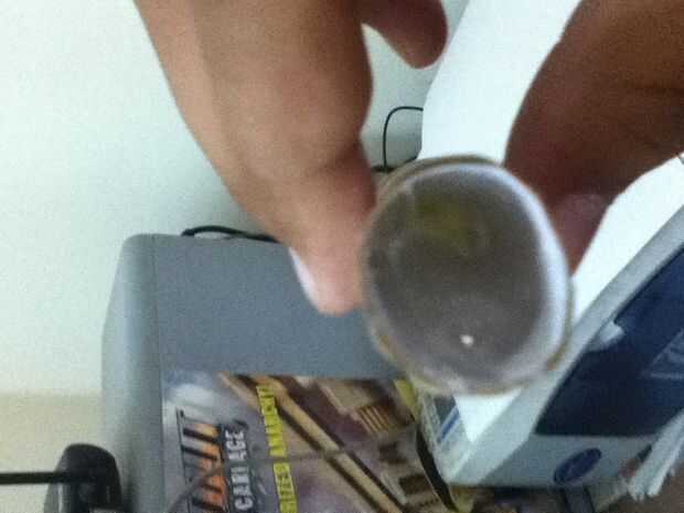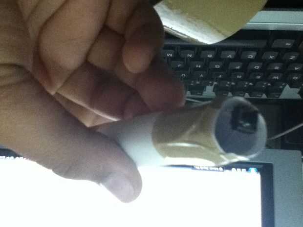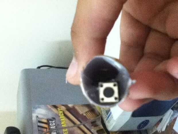 Ahora insertar el circuito en el rodillo y asegúrese de que el interruptor esté en el final pero la parte del LED no importa si está cerca el otro extremo. Luego calentar la pistola de pegamento de poner pegamento sobre el LED y algunos detrás del interruptor de usan imagen de referencia.
