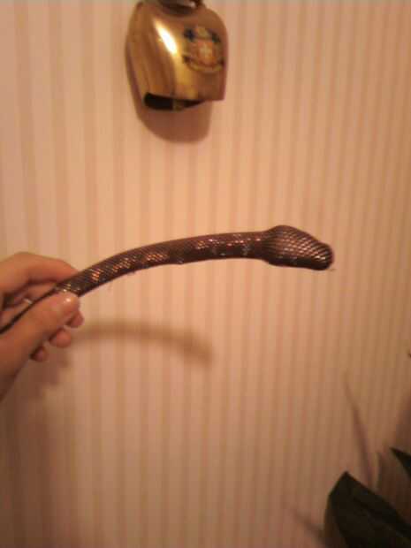 Tire de cada serpiente sobre las serpientes de tubo para que el relleno la cabeza descanse cómodamente sobre el extremo de la tubería. Meta a la tela hacia abajo para que se reúne a la tela del casco y se integra visualmente.