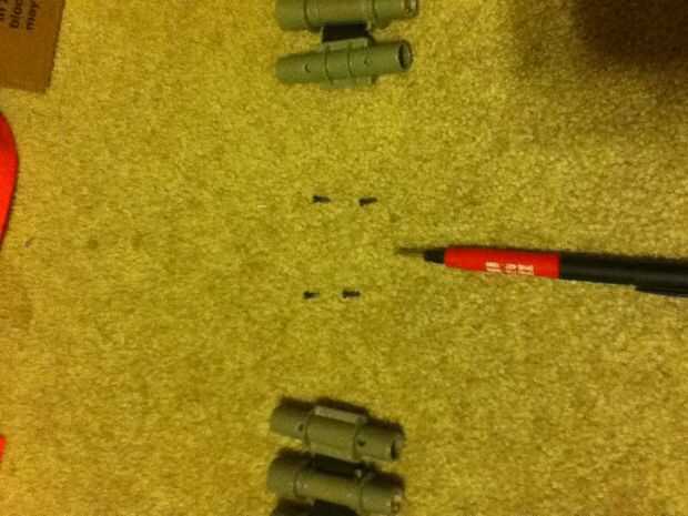 Uno de los extremos de cada correa de dart se alinean con las balas mirando hacia fuera. Tomar los tornillos de cada extremo y la parte superior del extremo. Deje las correas como son.