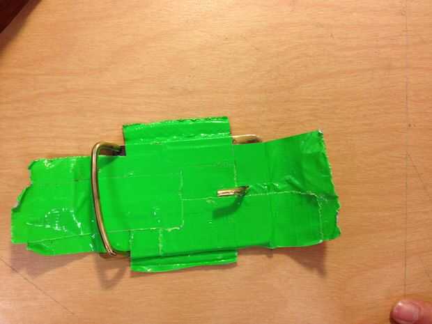 Paso 3: Conducto de cinta la parte posterior de la hebilla del cinturón.