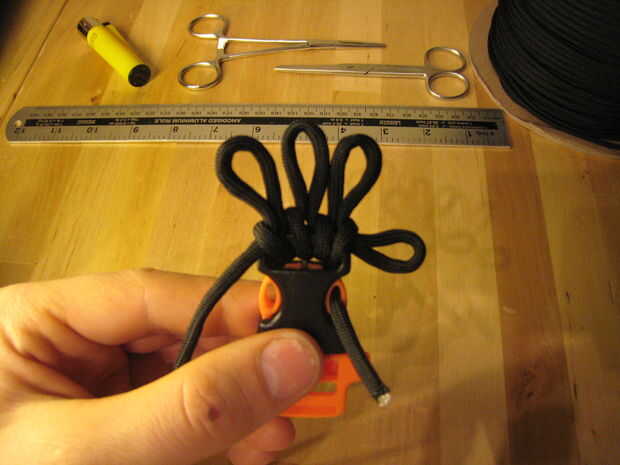 Usando los dedos o con sus pinzas, tire a través del corriente final de la cuerda para formar un total de 4 lazos.