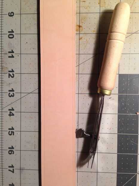 Pic4: Utilice a una Ralladora de cuero para frontera de correa según el patrón de pliegues.