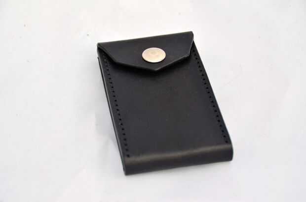 Pic1: Preparar la pieza de cuero del patrón y acabado de teñido en negro.