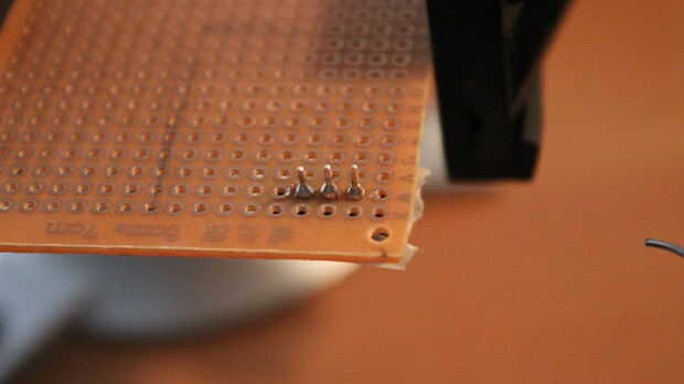 - Después de eso, coloque el transistor en la parte frontal las tres resistencias en el medio. Estos se conectarán más tarde. Asegúrese de que la parte plana se enfrenta a la resistencia como la orientación es importante. la soldadura de los extremos para obtener la posición y luego ajustar. Mientras estaba haciendo esto hice un puente de soldadura porque usaba demasiada soldadura. Usé el lechón de la soldadura para eliminar eso. Luego procedí a soldar el pin del medio. He añadido también los condensadores. A la izquierda de este punto de vista es el capacitor de 220uF, el derecho es el condensador de 100uF.